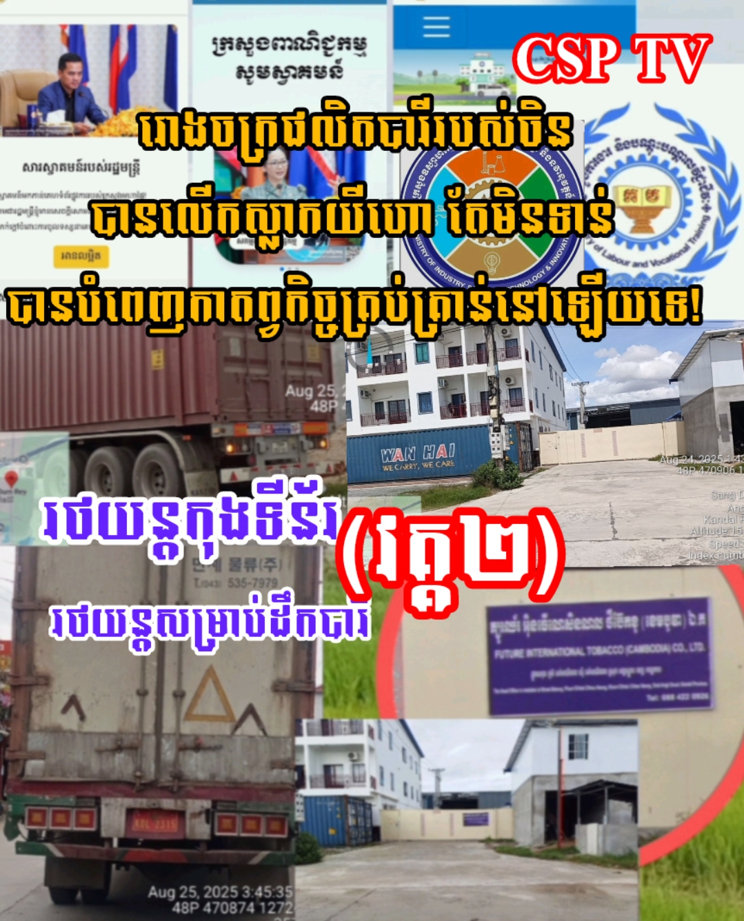 រោងចក្រផលិតបារីដែលជាសារធាតុញៀន មានការលើកស្លាកយីហោរំលេចហើយពេលនេះខណៈដែលមានរថយន្តកុងទីន័រ និងប្រភេទរថយន្តផ្សេងទៀតមានការដឹកជញ្ជូនចេញចូលបន្ទាប់ពីអ្នកសារព័ត៌មានមានការចេញផ្សាយជាសាធារណៈស្តីអំពីទីតាំងនេះ(វគ្២គ)