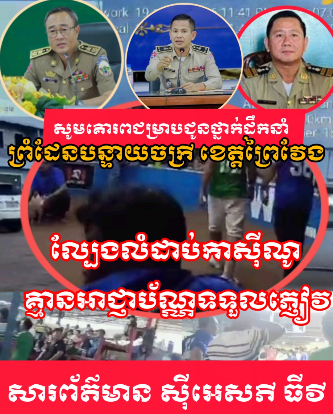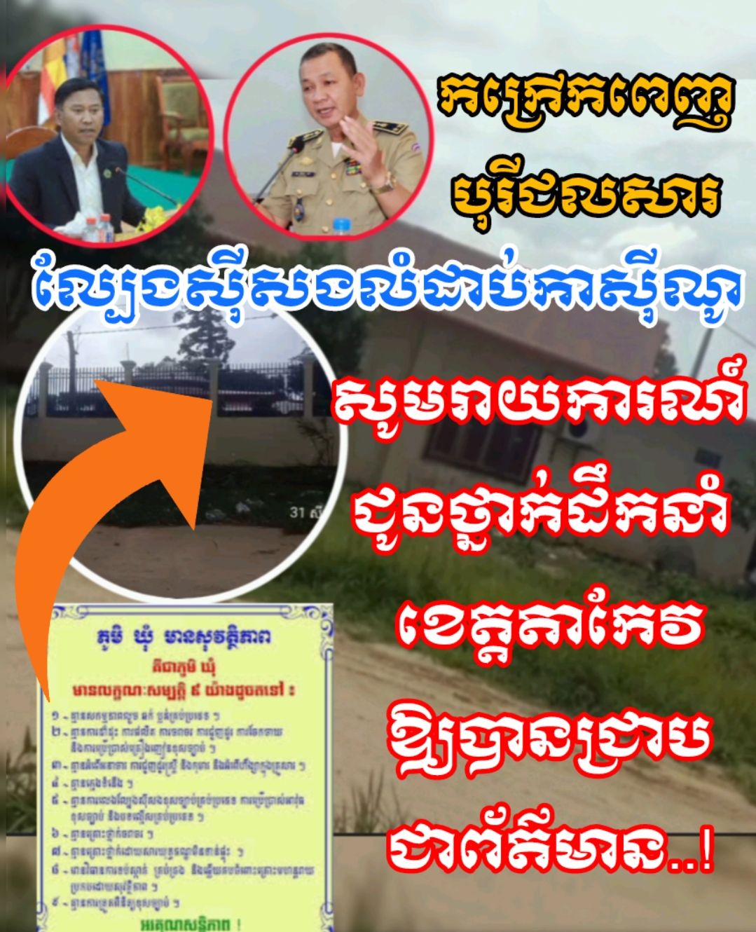 សូមជម្រាបដំណឹងជូនដល់អាជ្ញាធរ និងមន្ត្រីពាក់ព័ន្ធឱ្យបានជ្រាបអំពីល្បែងជាច្រើនប្រភេទកំពុងតែបើកលេងដោយគ្មានច្បាប់អនុញ្ញាតនៅក្នុងទីតាំងមួយកន្លែង ខណៈអាជ្ញាធរសមត្ថកិច្ចក្នុងមូលដ្ឋានបែរជាមិនដឹងទៅវិញ!