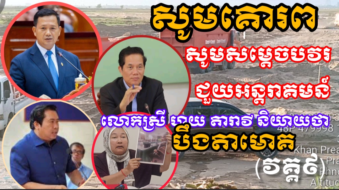 លោកស្រី ហ៊ួយ តារាវី ភរិយាកងកម្លាំងកងទ័ពម្នាក់នៅតែបន្តគោរពដង្ហើយហៅសម្ដេចបវរធិបតី ហ៊ុន ម៉ាណែត នាយករដ្ឋមន្ត្រីកម្ពុជា និងប្រមុខរាជរដ្ឋាភិបាលជួយអន្តរាគមន៍ដើម្បីឱ្យមានដំណោះស្រាយដីធ្លីធ្លាប់បានទទួលសិទ្ធិកាន់កាប់ និងអាស្រ័យផលជាយូរឆ្នាំមកហើយ ខណៈដែលមានការកាន់កាប់ពីបុគ្គលផ្សេងមិនមែនជារដ្ឋ(វគ្គ៩)!