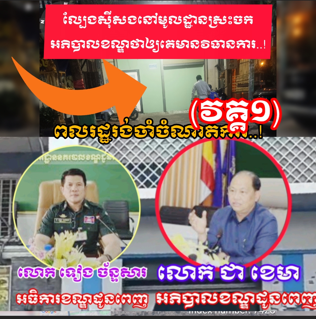 ការនាំគ្នាបើកល្បែងស៊ីសងខុសច្បាប់ក្នុងមូលដ្ឋានឈានដល់ផ្អើលដល់អ្នកសារព័ត៌មានចេញផ្សាយ និងធ្វើសេចក្តីរាយការណ៍ជូនអភិបាលខណ្ឌដូនពេញកាលពីម្សិលមិញ តែមកទល់ពេលថ្ងៃទី២៦ ខែកញ្ញា ឆ្នាំ២០២៥នេះ នៅមិនទាន់មានចំណាត់ការពីអាជ្ញាធរ និងសមត្ថកិច្ចខណ្ឌដូនពេញនៅឡើយនោះទេ តើមូលហេតុអ្វី?(វគ្គ១) :