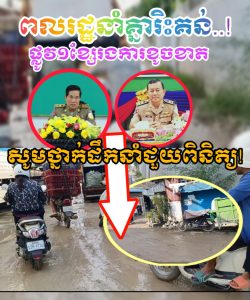 ថ្វីបើជាការធ្វើនោះល្អគួរឱ្យកត់សម្គាល់មែនក៏មានកន្លែងខ្លះអាចរដ្ឋបាលរាជធានីភ្នំពេញមិនបានជ្រាបអំពីបញ្ហាមួយចំនួនដែលកើតឡើងនៅក្នុងមូលដ្ឋានដូចស្ថានភាពជាក់ស្ដែងដែលប្រជាពលរដ្ឋកំពុងតែរអ៊ូរទាំថាផ្លូវមួយខ្សែគឺផ្លូវលេខ៧៧បេតេ ភូមិចម្រើនផល៣ សង្កាត់បឹងទំពុនទី១ ខណ្ឌមានជ័យ រាជធានីភ្នំពេញ ធ្វើឲ្យអ្នកធ្វើដំណើរពិបាកក្នុងការធ្វើដំណើរណាស់ អាចឯកឧត្តមមិនបានជ្រាបអំពីបញ្ហានេះក៏ថាបាន ឬក៏បញ្ហាទាំងអស់នេះឬក៏ការកសាងជួសជុលផ្លូវមួយខ្សែនេះត្រូវអាខានដោយសារអ្វីដែរ?